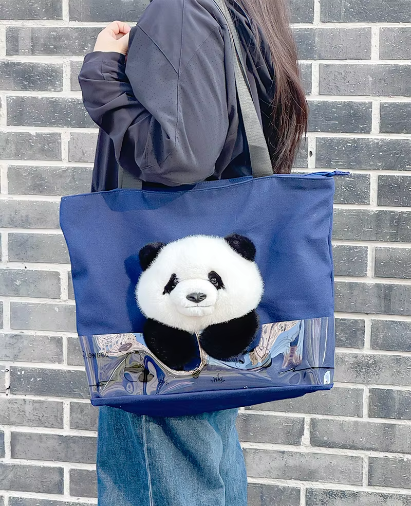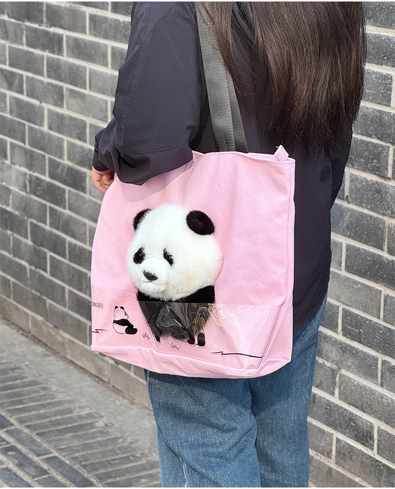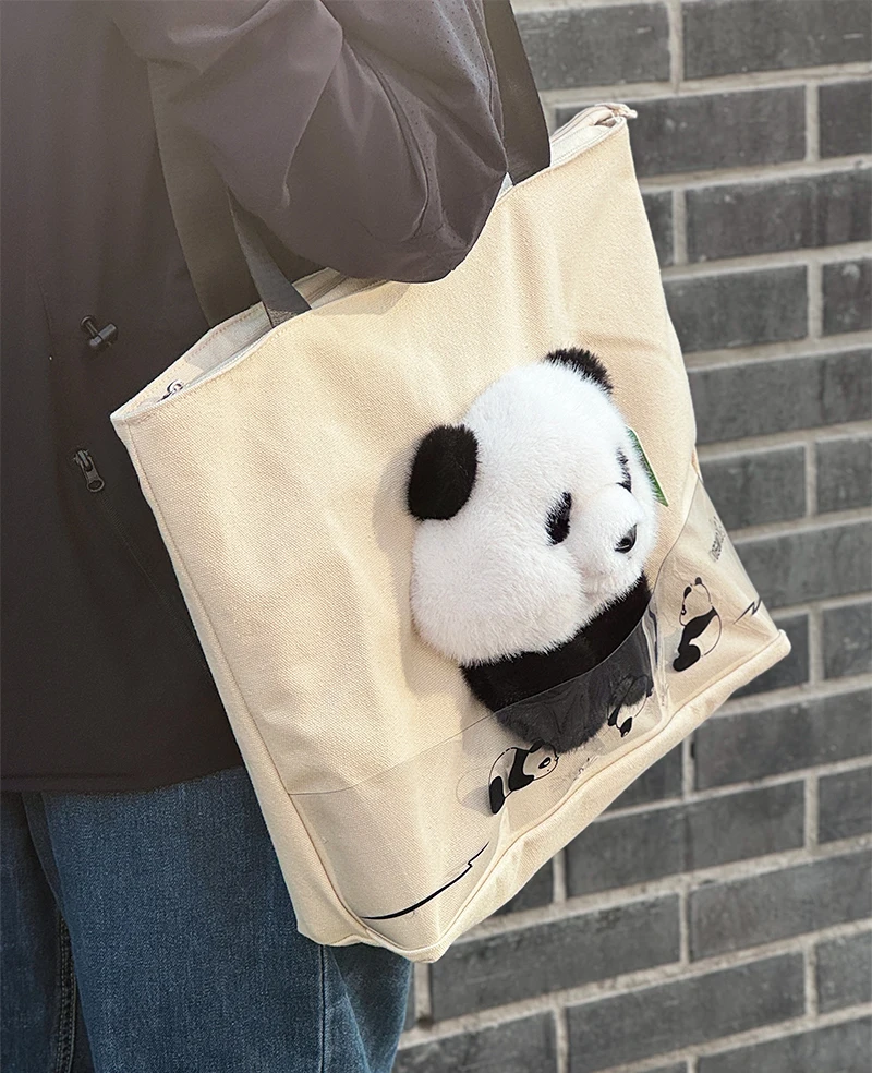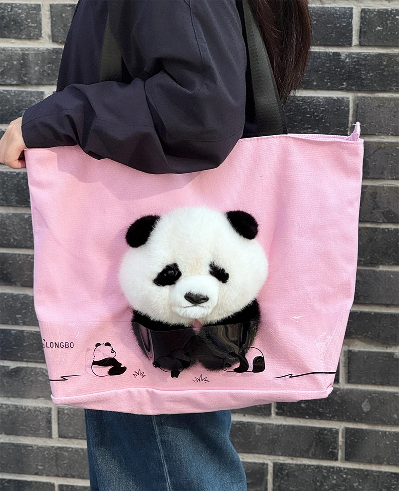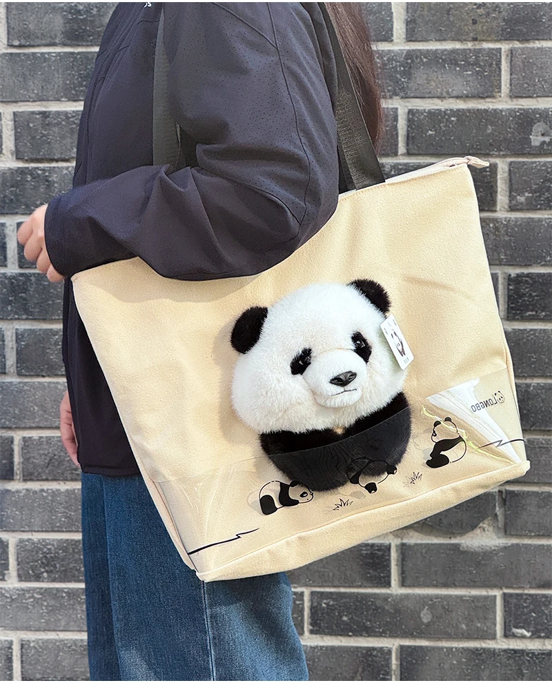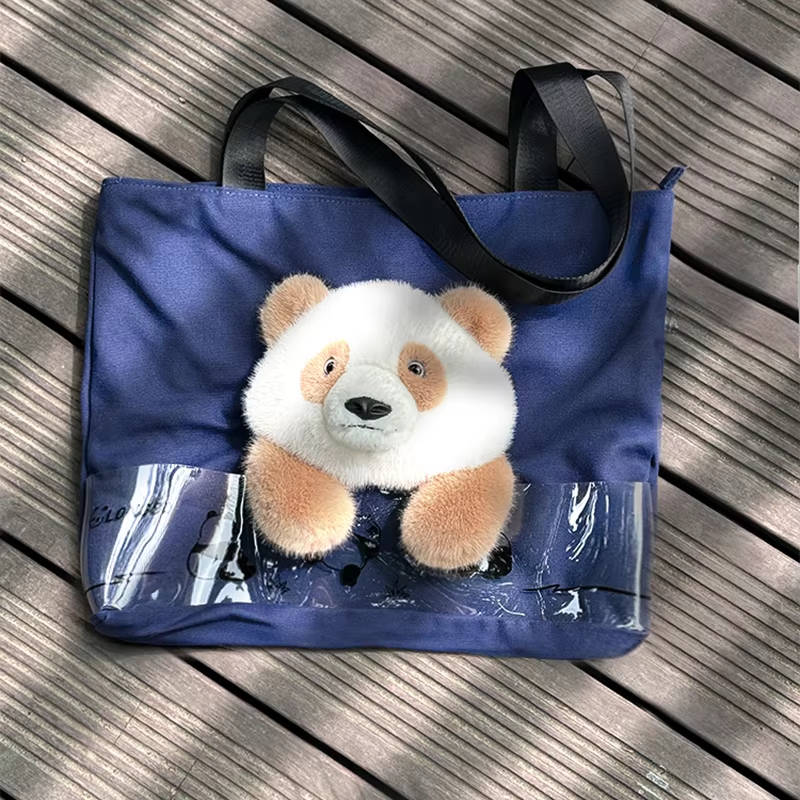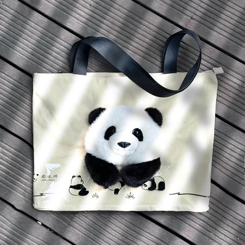 3D Plush Panda Character Canvas Outdoor Handbag 3D Promotional Tote Bag for Food Storage Indoor and Outdoor Use Cartoon Tote
