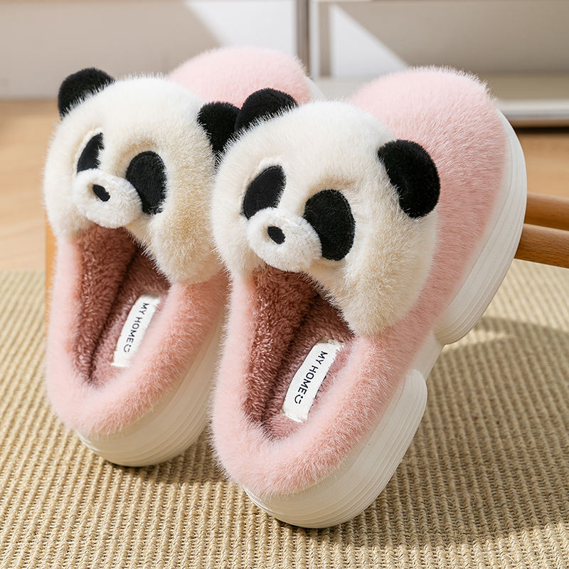 Cartoon Panda Fluffy Fur for Slippers 2025 Autumn Winter Thickened Non-Slip Indoor Home Warm Stylish Comfortable Stylish