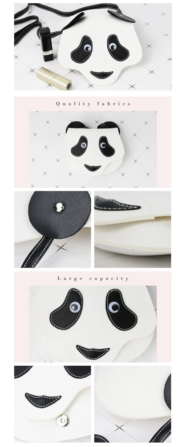 Custom Logo Mini Sling Shoulder Bags for Girls Lovely Panda Kids Crossbody Bag with Cover Closure Type