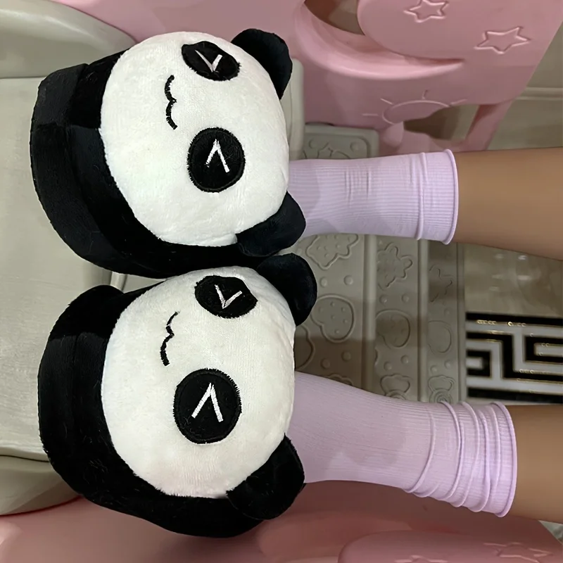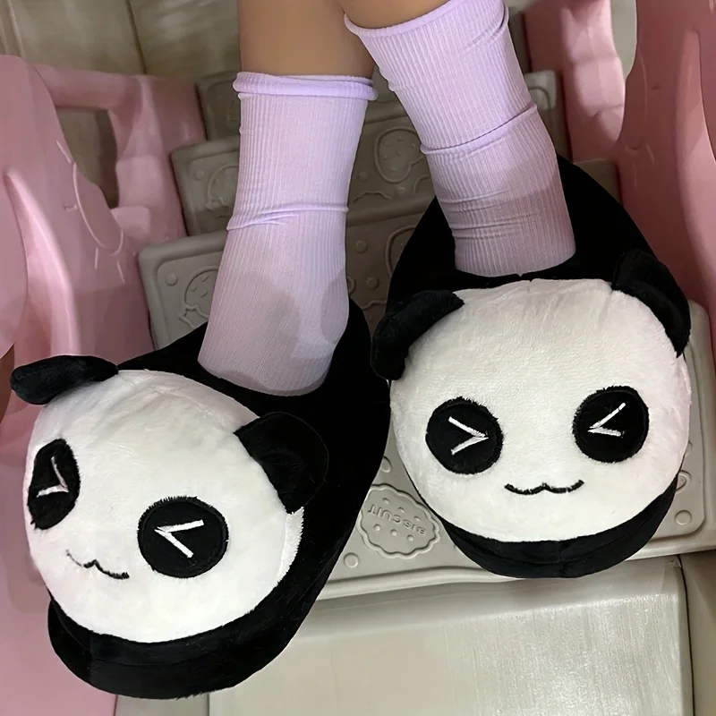 Cute Design Plush Shoes Three-Dimensional Cartoon Panda Winter Cartoon Soft Closed-Toe Funny Shoes for Home Use