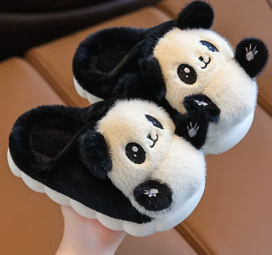 Cute Fluffy Durable Comfortable Panda Cartoon Plush Upper Anti-Slippery Fashionable Soft Home Slip on Cozy Winter Warm Slippers