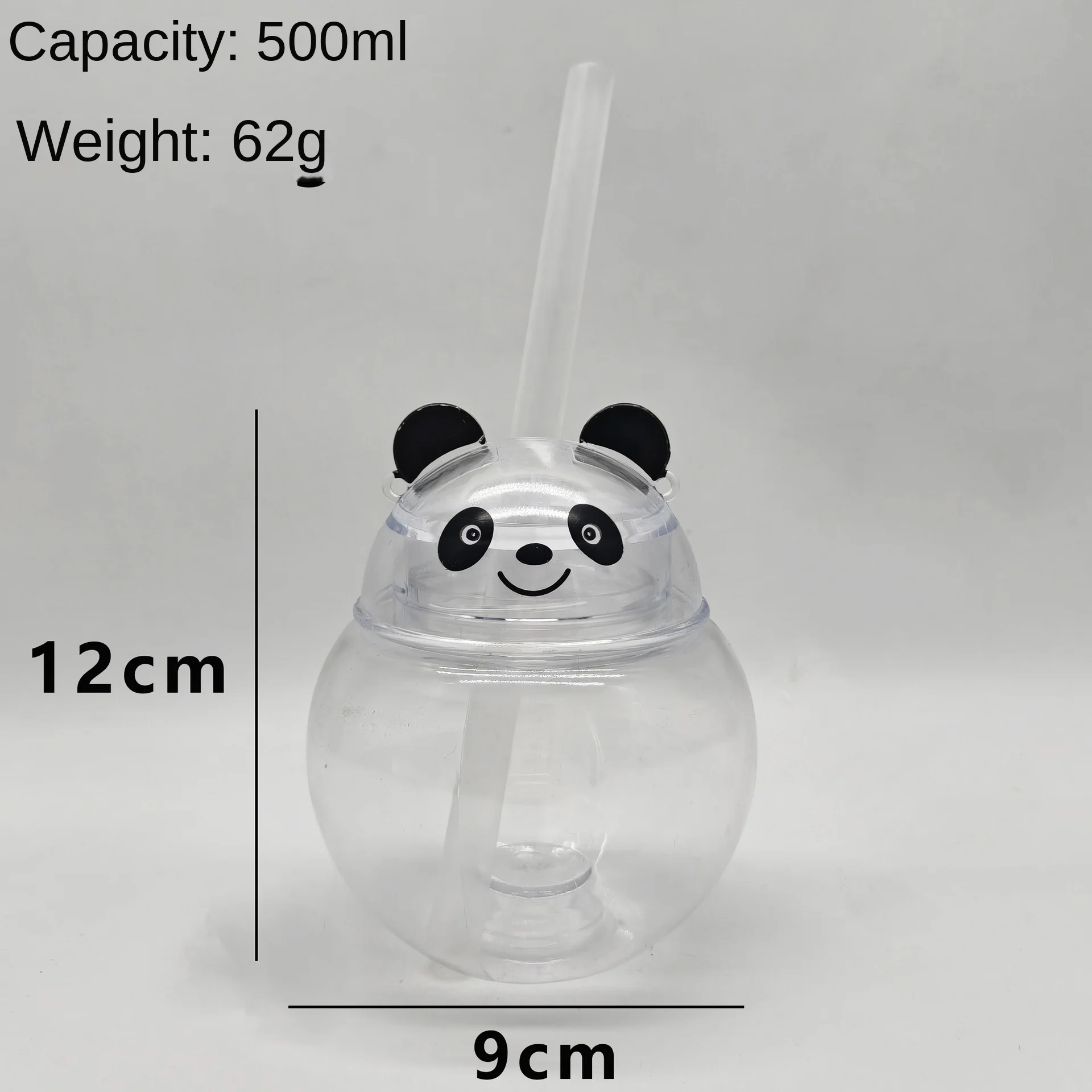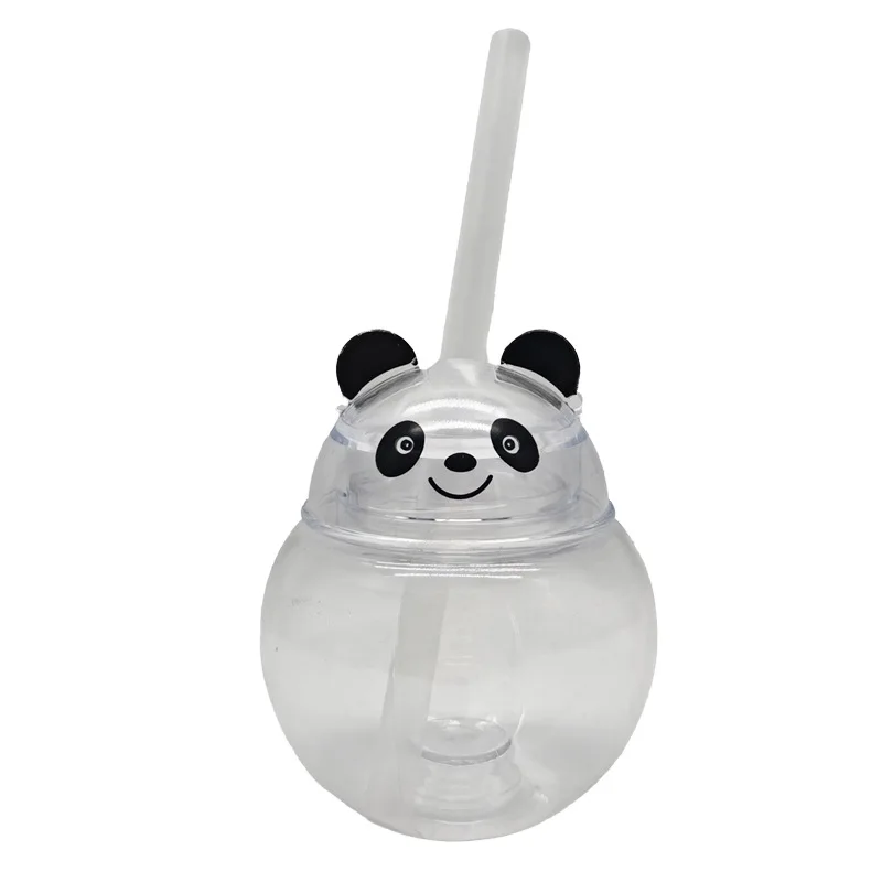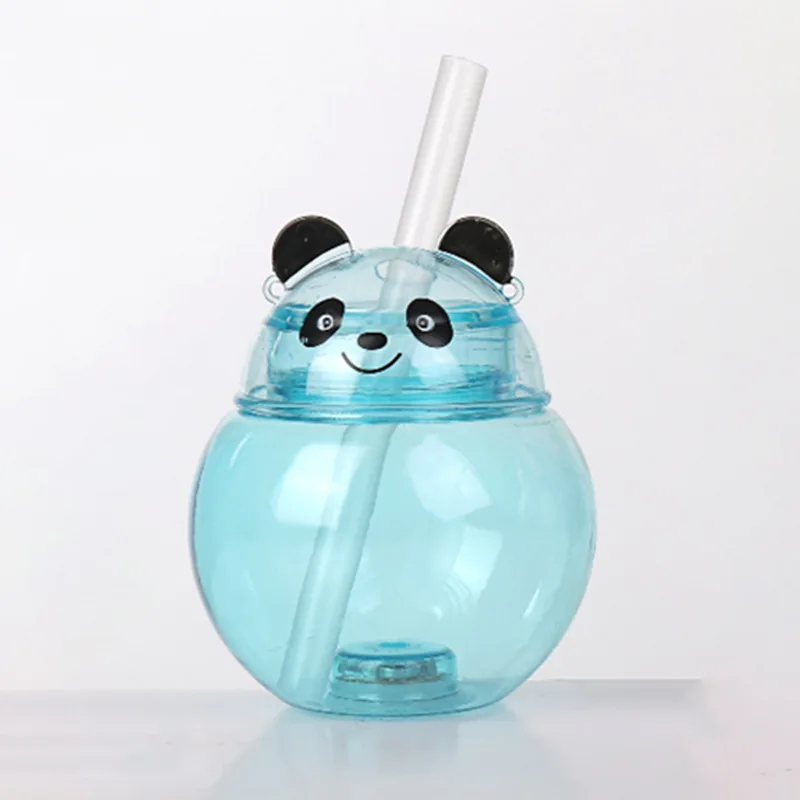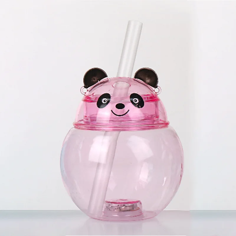 Hot Selling 500ml Creative Cartoon Panda LED Light Water Bottle Single Wall Plastic Lanyard Yard Cups for Party Slush