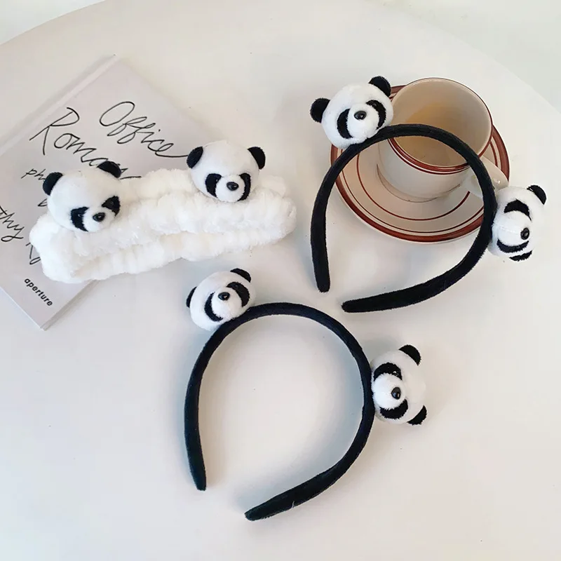 Jiamu New Design Cute Panda Head Hair Band 3D Cartoon Panda Children and Women Headband for Washing Face Makeup Hair Ornaments