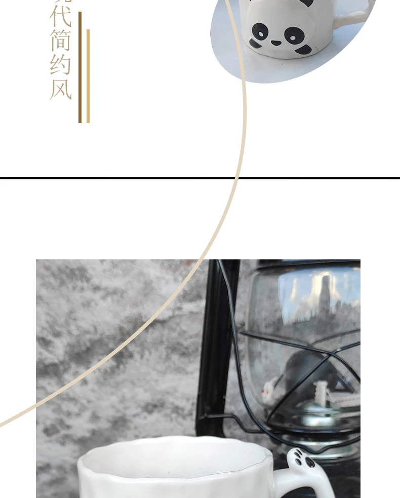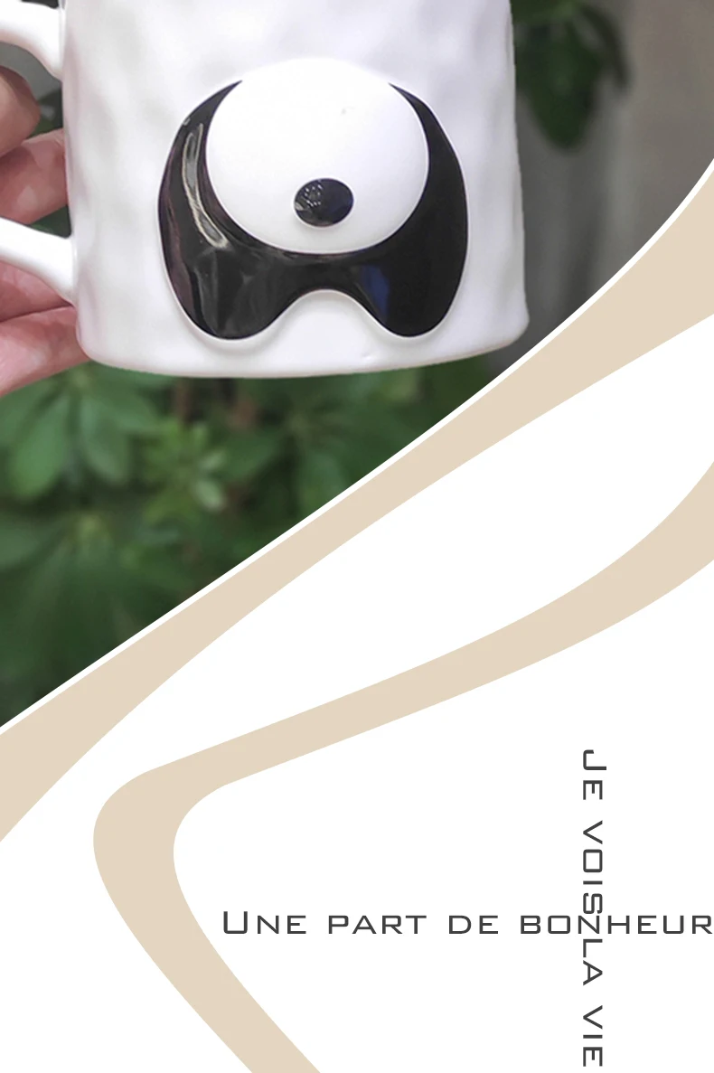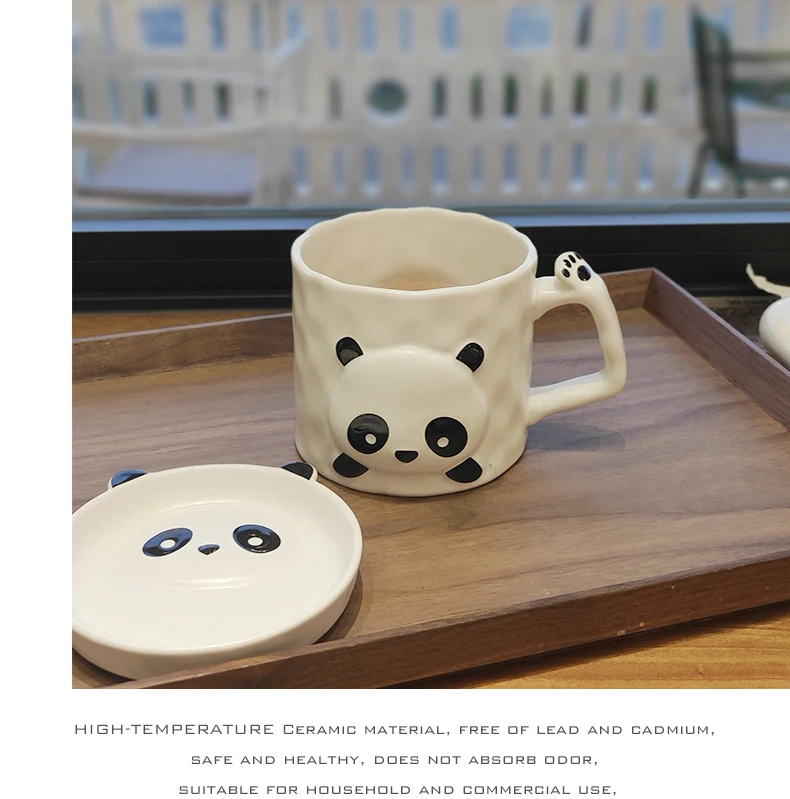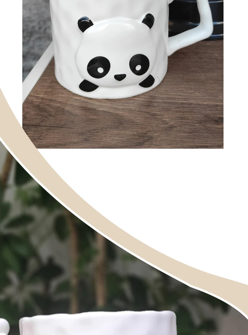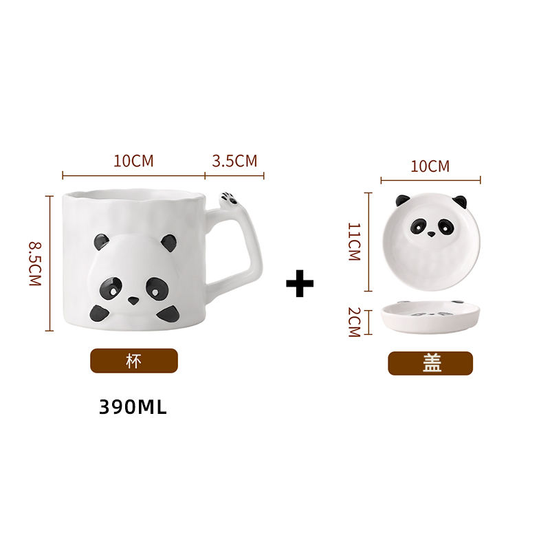 New Design Ceramic Adorable Panda Water Cups Porcelain Mug with Lids Panda Mugs with Spoons