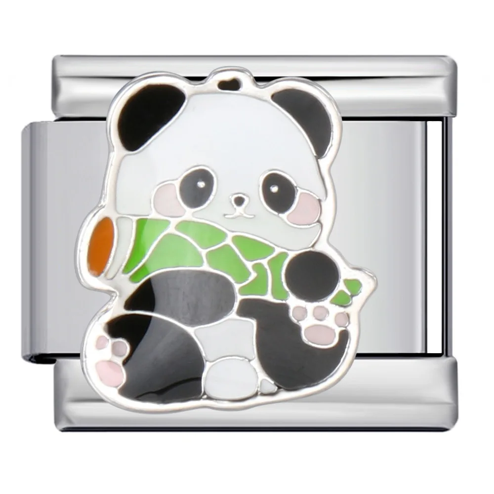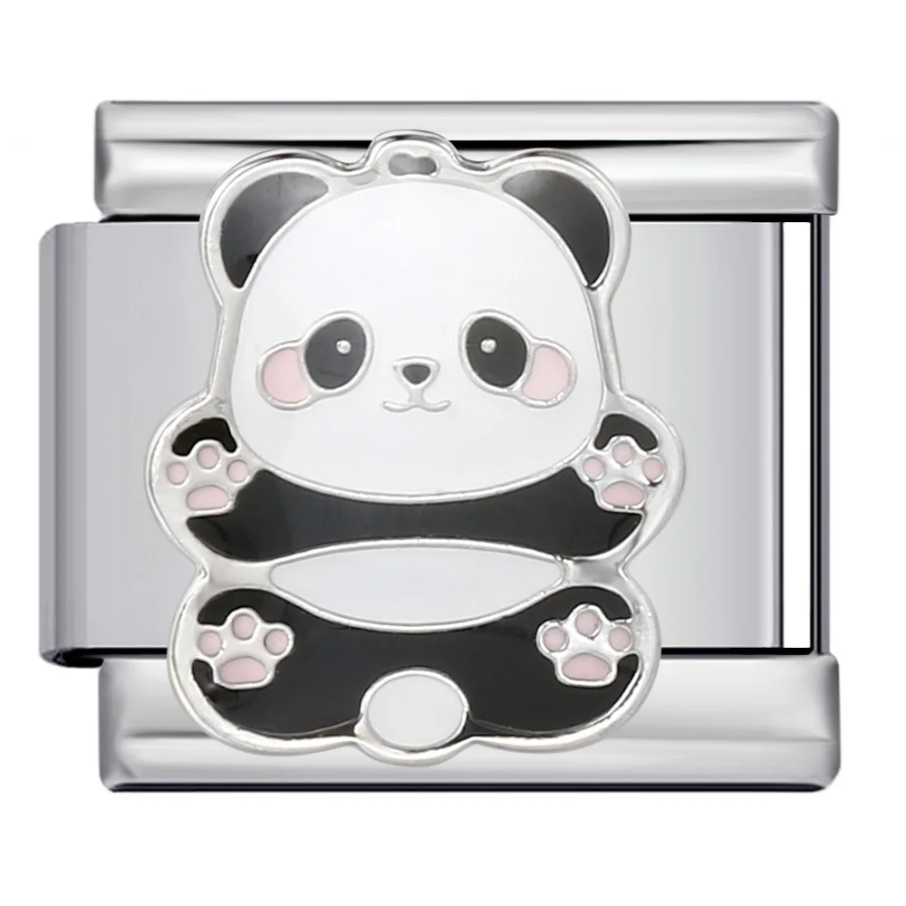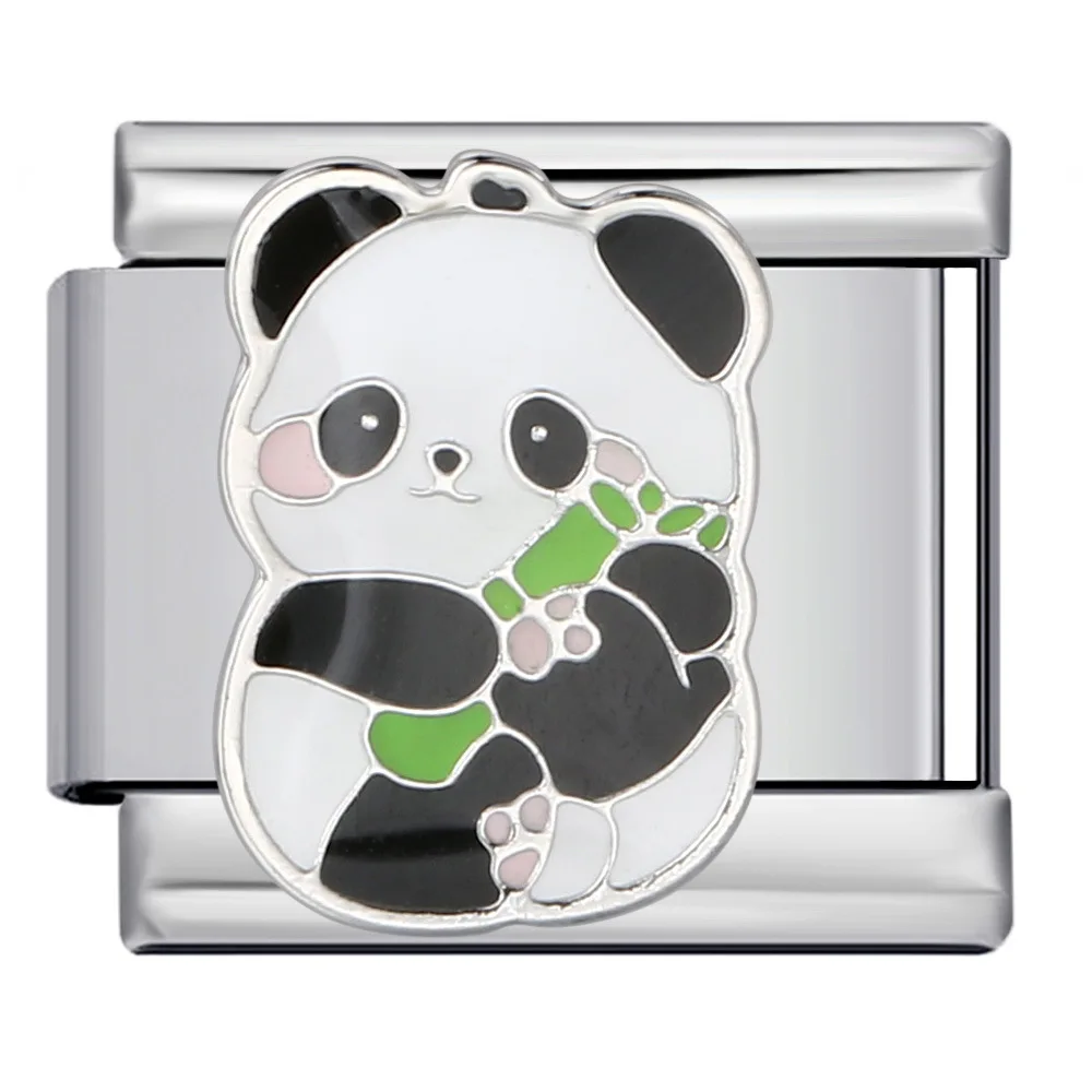 SGYUAN Fashion Cute Panda Animal Series Stainless Steel Link Fit 9mm Italian Charm Bracelet Making DIY Jewelry for Women and Man